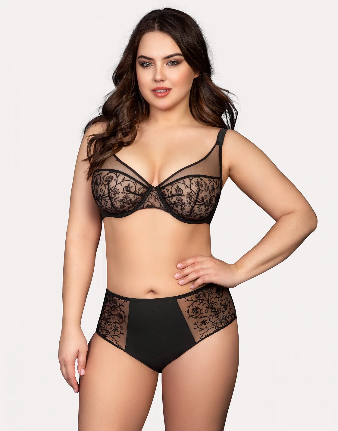 Бюстгальтер с мягкими чашками. Закрытые чашки и широкие бретели обеспечивают надежную поддержку пышной груди.